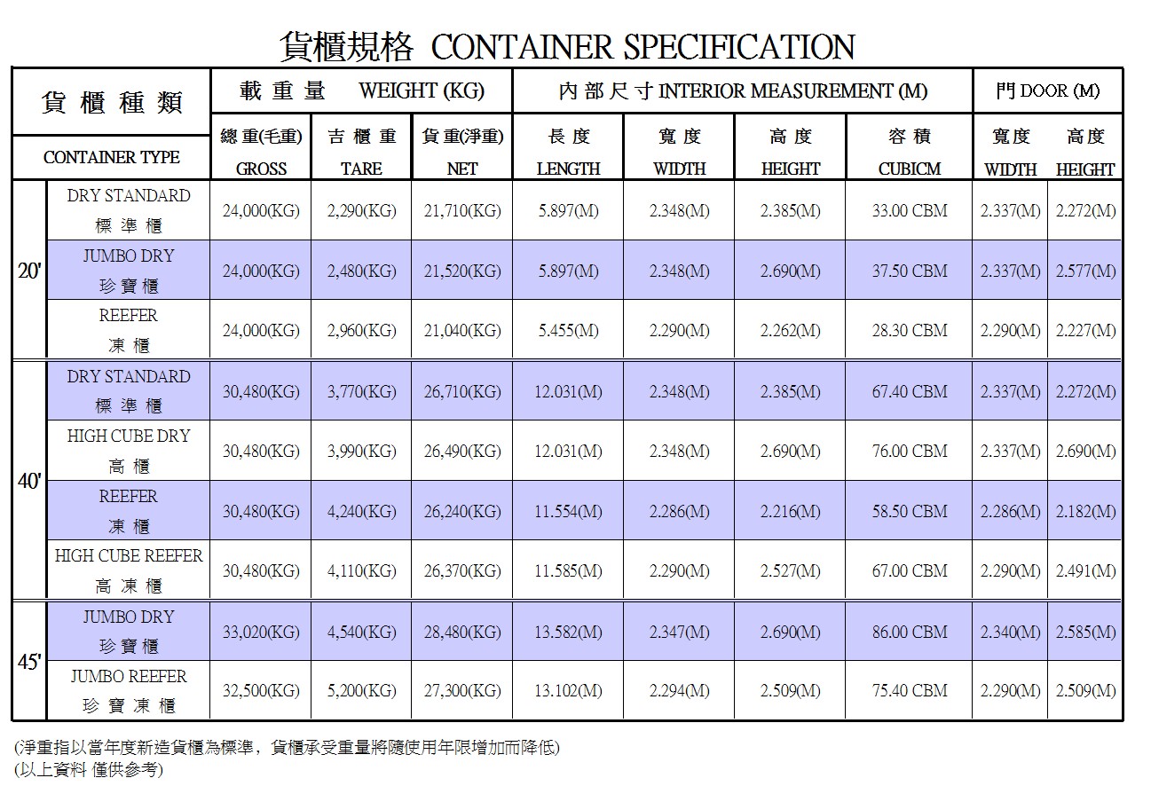 貨櫃規格